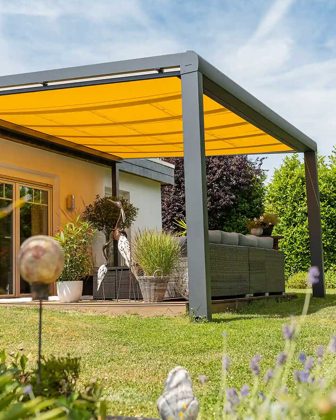 Ultimate Stability with ZIP Technology (T350 ZIP): Our high-end ZIP system ensures the fabric is securely tensioned on all four sides. This eliminates gaps and provides a modern, high-quality finish beneath your glass roof.